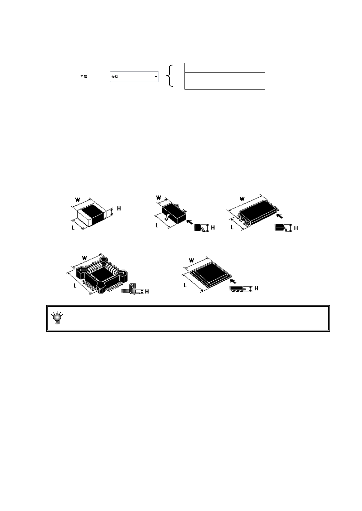 例>W = 外形尺寸 横 L = 外形尺寸 纵 H = 元件高度