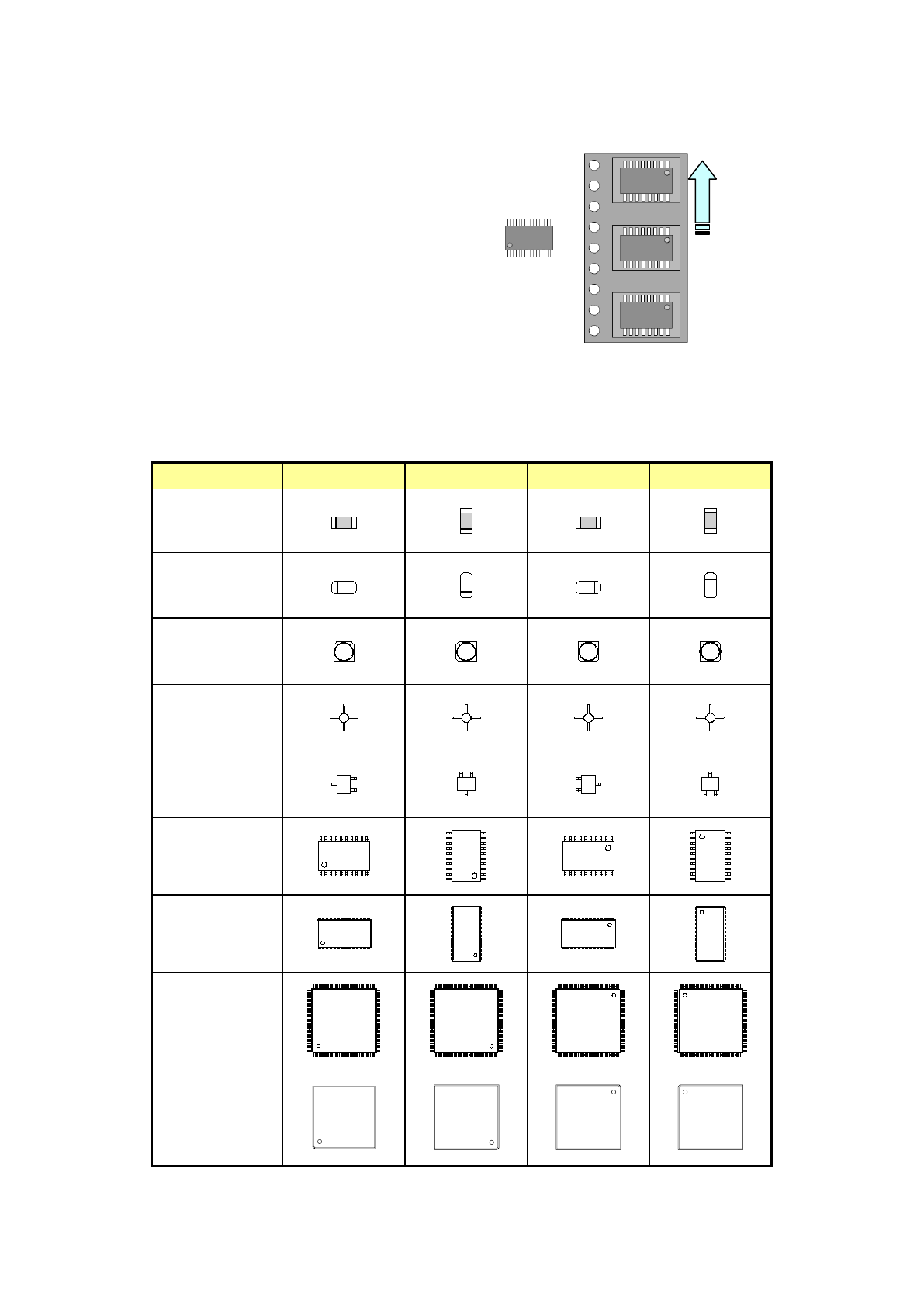 第 1 部 基本篇 第 4 章 制作生产程序 4- 56 元件种类 0 ° 90 ° 180 ° 270 ° QFJ( PLCC) BQFP( PQF P) TS OP -1 TS OP -2 BGA FB GA 网络电阻 微调电容器 单向引脚连接器 双向引脚连接器 Z 形引脚连 接器 J 引脚插座 鸥翼式插座 带减震器的插座