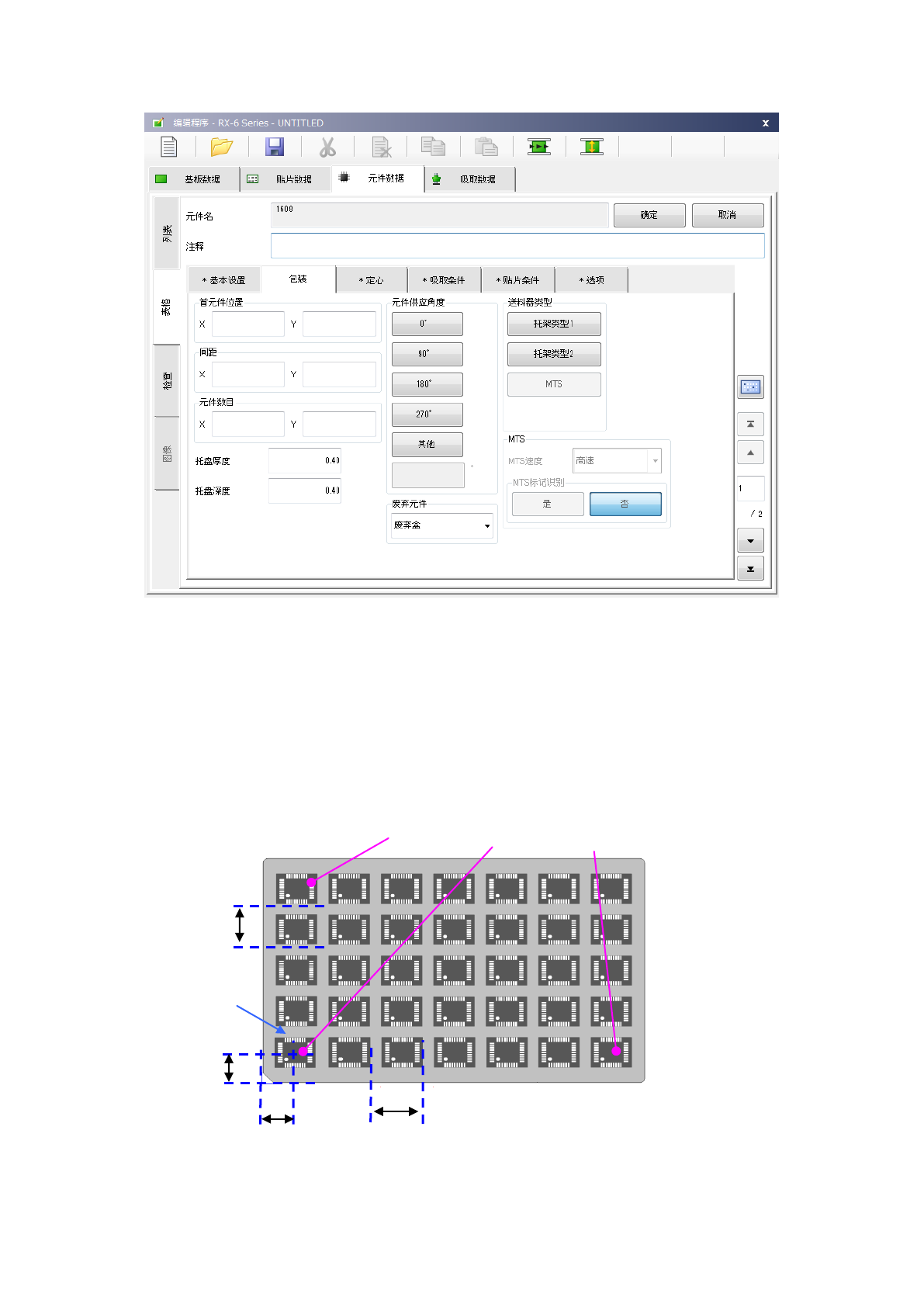 托盘元件的首元件中心位置尺寸(X、Y) : 输入托盘外形起的尺寸。