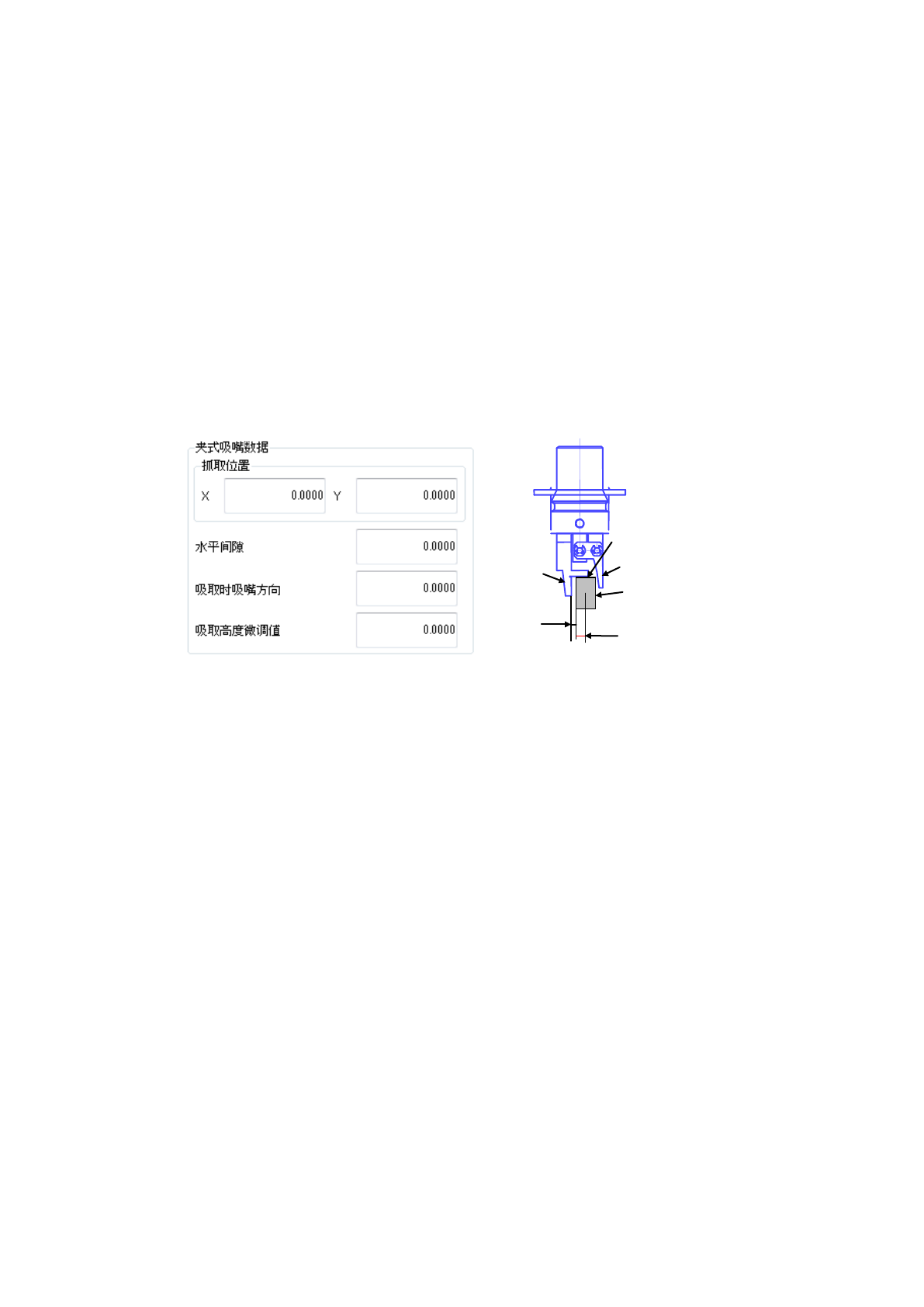 水平间隙 :夹式吸嘴固定侧卡头的固定臂面与元件之间的间隙(b),要输入负数。
