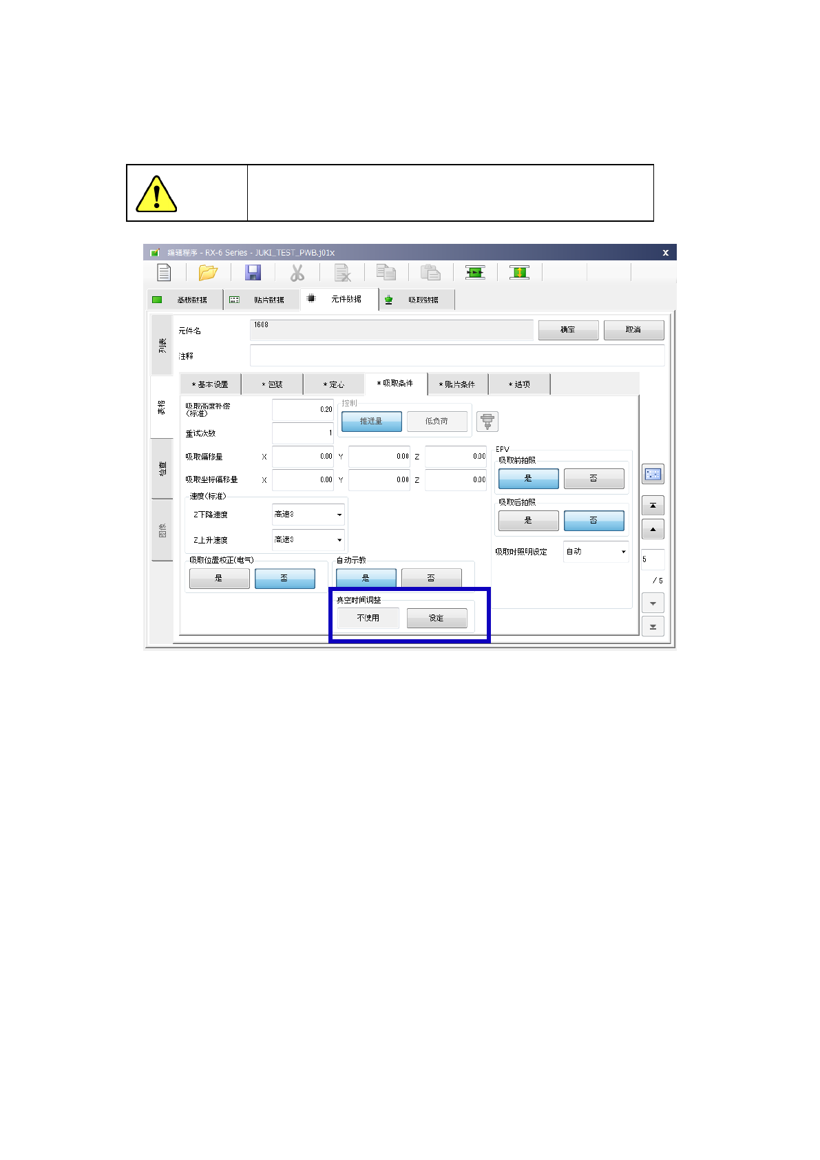 当设置为“0”时,因元件尺寸(高度)偏差等的影响,吸嘴到达不了元件,无法吸取元件或发生芯片