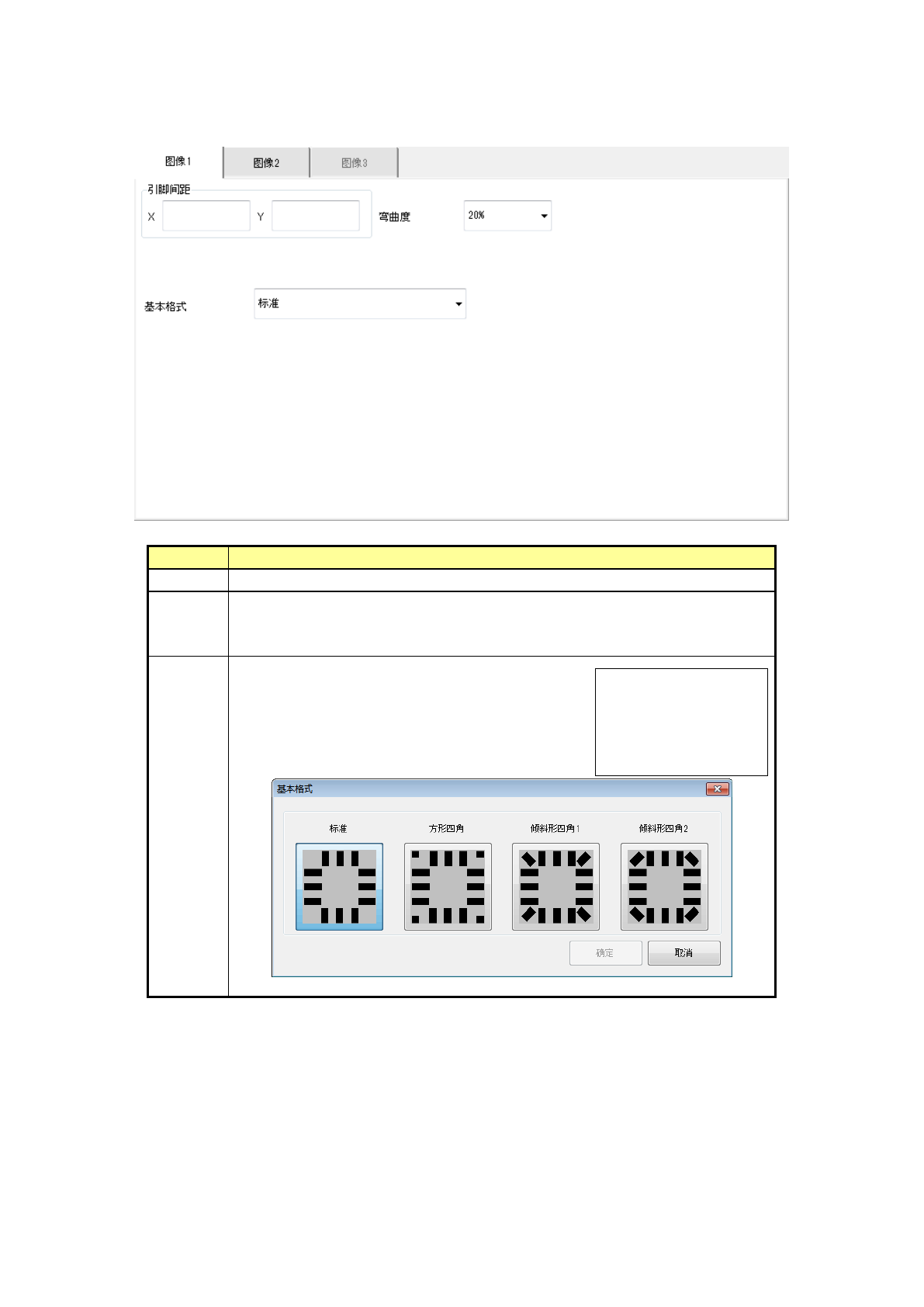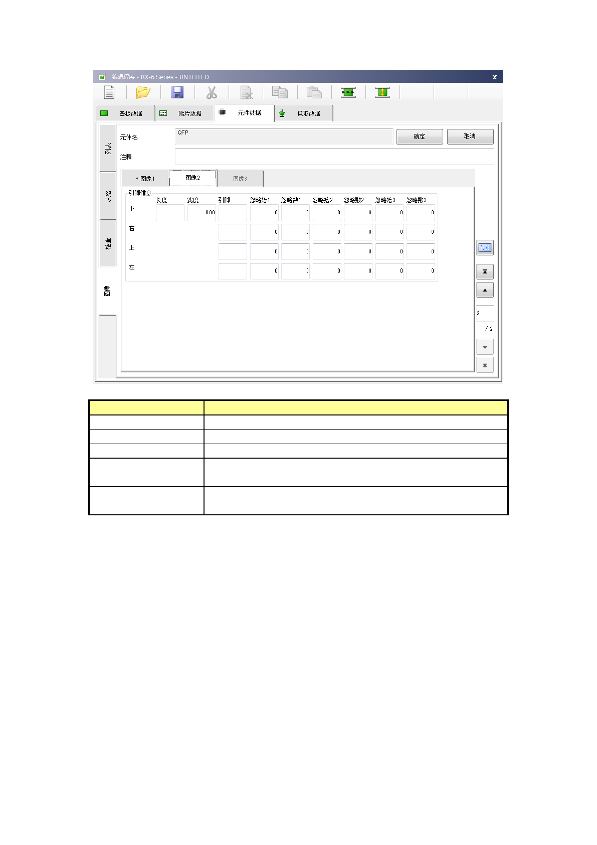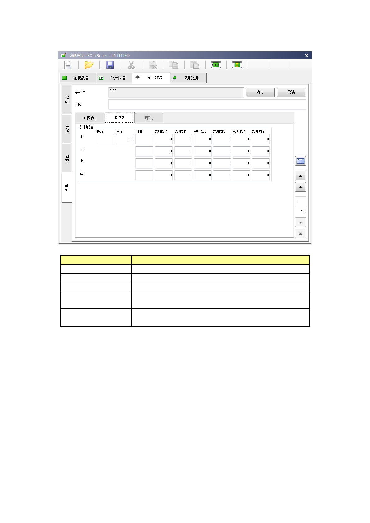 第 1 部 基本篇 第 4 章 制作生产程序 4- 99 4) QFN 在「 图像 1 」选项卡 中设置引脚间距 、弯曲度 及基本格式。 项目 概要 引脚间距 输入引脚间的宽 度。 弯曲度 从「 15% 」「 20% 」「 25% 」「 30% 」「 No ne 」中选择检出引脚弯 曲时的检测 级别。 默认值为 20% 。 基本格式 选择基本格式 ( Land 配置图案 ) 。 默认值为「标准 类型」 。 可从右侧所示下 拉列表中选择。…