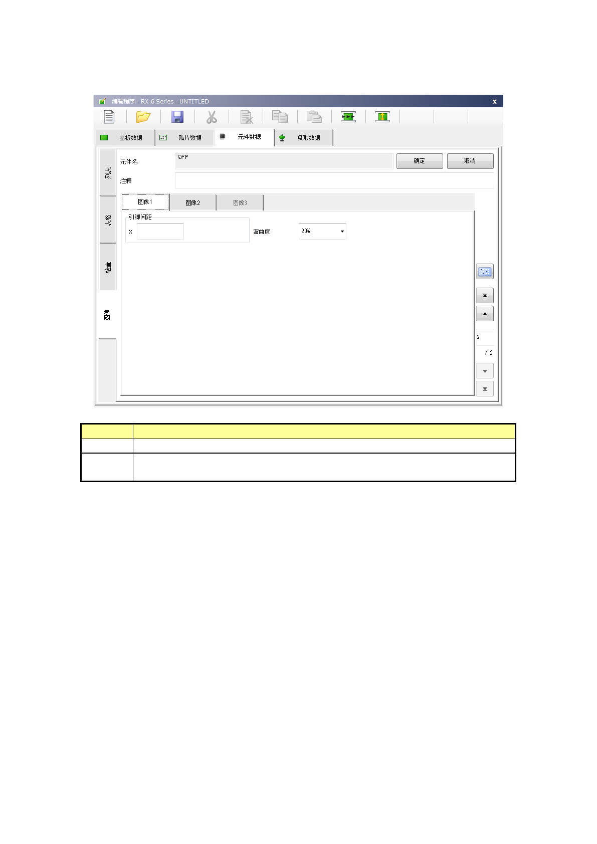 第 1 部 基本篇 第 4 章 制作生产程序 4- 100 在「 图像 2 」选项卡 中设置各边的引 脚信息。 项目 概要 长度 输入引脚接触基 板部分的长度。 宽度 输入引脚宽度。 引脚 如果是引脚元件 时,输入引脚数。 忽略始(开始) 1 ~ 3 输入缺少的 引脚位置。 输入范围 0 ~引脚根数( 默认值: 0 )。 忽略数 ( 缺少 数) 1 ~ 3 输入 缺少的 引脚数。 输入范围 0 ~引脚根数( 默认值: 0 )。