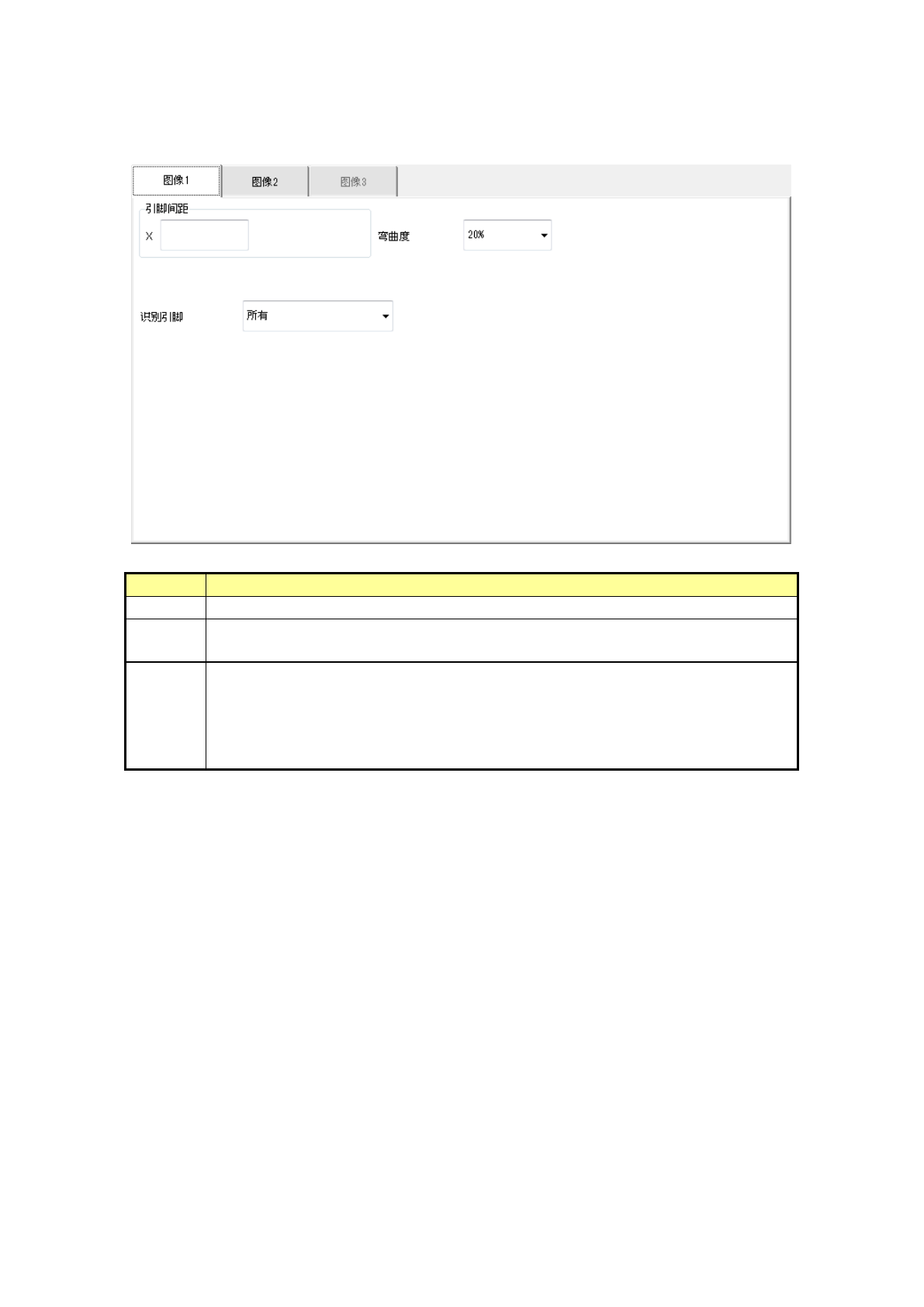 在「图像 1」选项卡中设置引脚间距及弯曲度。