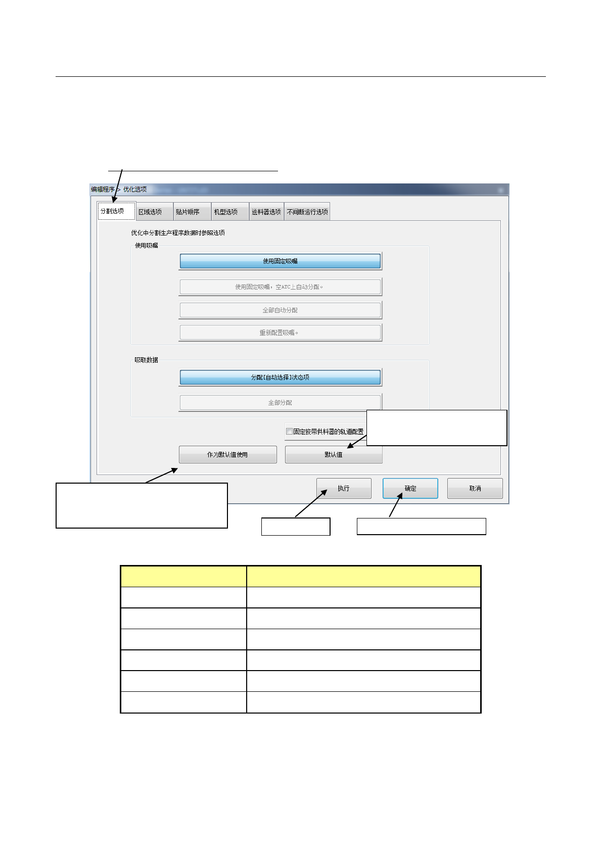 分割选项 设置分配吸嘴及吸取数据时的优化参照选项。
