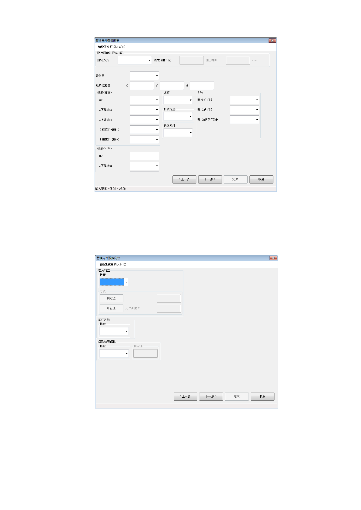 第 1 部 基本篇 第 4 章 制作生产程序 4- 170 显示元件数据的 贴片条件选项卡的内容。 输入要变更的各 相关数据数值。 在对话框的下部 会显示输入范围。 按 [ 上一步 ] 按钮返 回到前一个画 面。 按 [ 下一步 ] 按钮转 移到下一个画 面。 按 [ 取消 ] 按钮中断处理,关闭 对话框。 显示元件 数据的检查 1 选项卡的内容。 输入要变更的各 相关数据数值。 在对话框的下部 会显示输入范围。 按 [ 上一步 ] 按…
