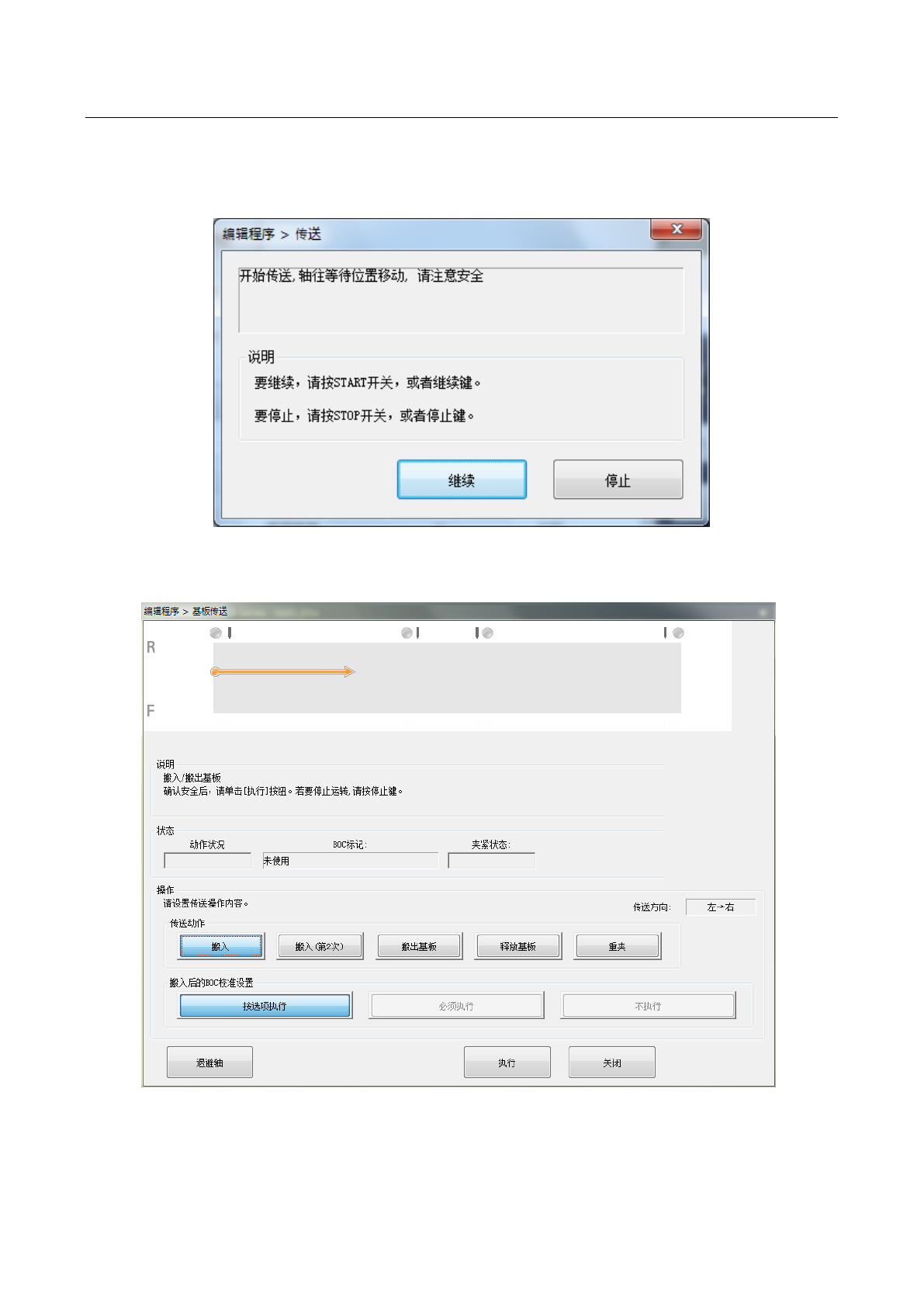 将轴回避到安全位置后,显示以下的基板传送对话框。