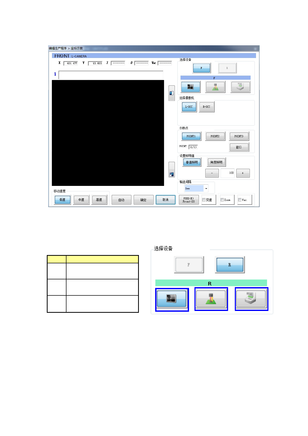 指定要使用的 Head 单元(F/R)及示教设备后,指定的设备会移动到当前显示的坐标上。