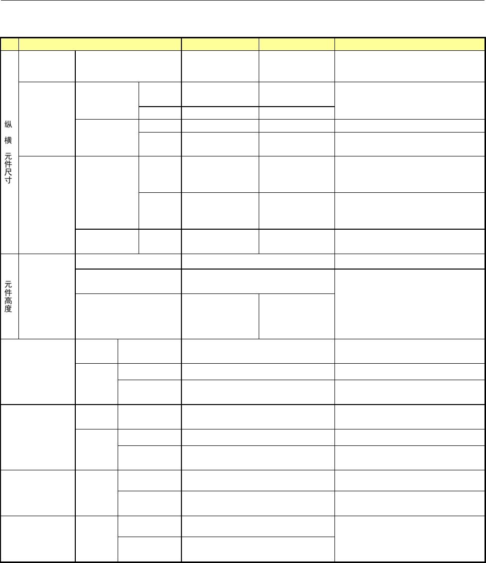 第 1 部 基本篇 第 1 章 装置概要 1- 40 RX-6B 单位: mm 6 吸嘴 Head 3 吸嘴 Head 备注 × 激光识别 LNC120 (注 7 ) 0402 ~□ 50 或 对角线长度 70 0402 ~□ 33.5 或 对角线长度 47 图像统一识别 (注 1 ) 选项 54mm 视野摄 像机 (注 3 ) 反射照明 □ 3.0 ~□ 33.5 ( 注 6) □ 3.0 ~□ 50.0 塑封尺寸□ 1.7 mm 以…