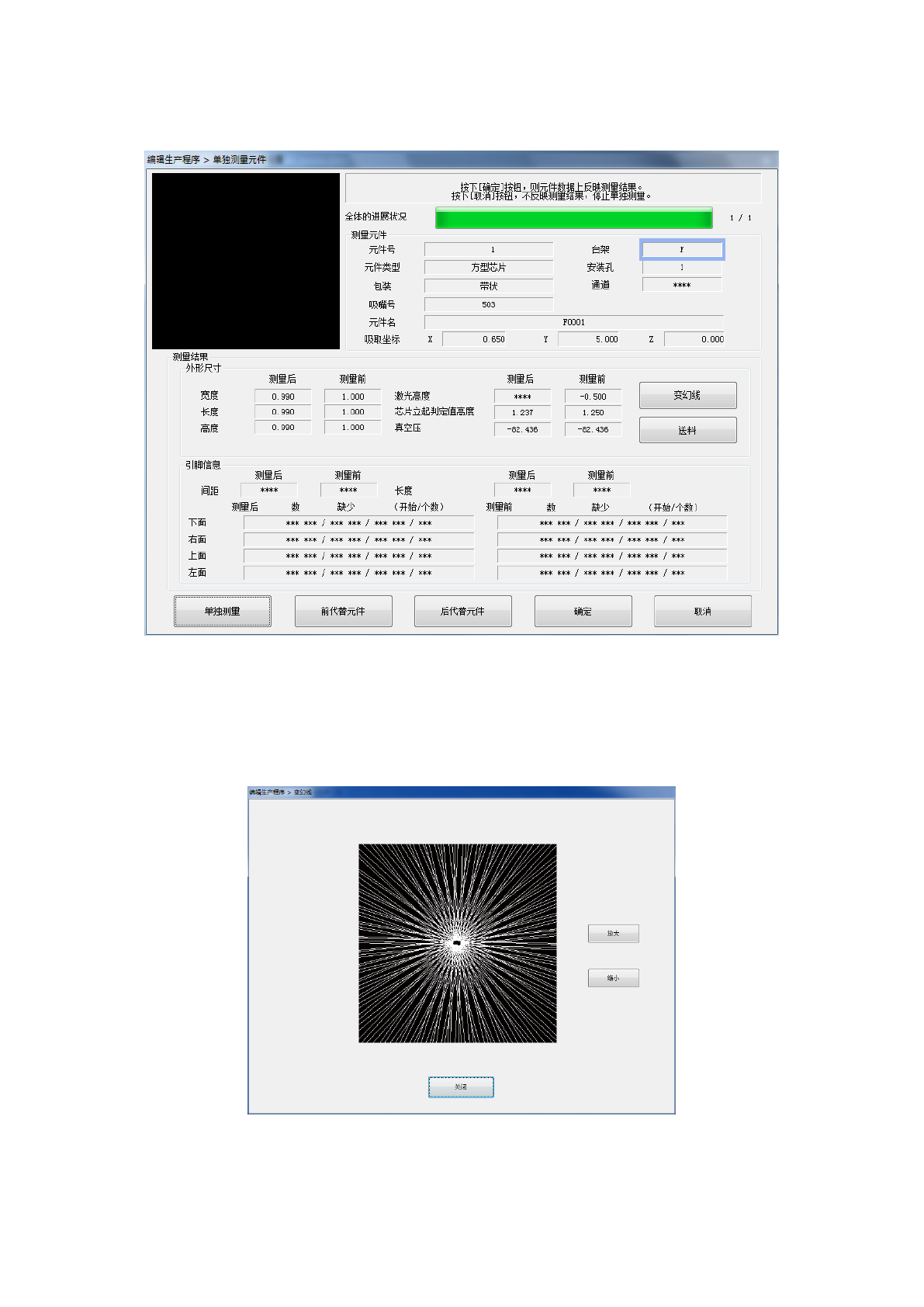 显示测量元件的内容及吸取位置。