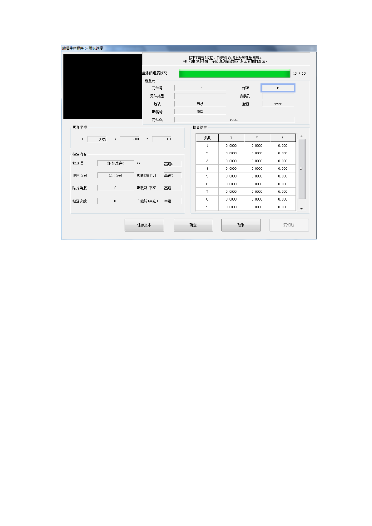 使检查结果有效,并将结果存入元件数据中。然后返回原来的确认速度画面。