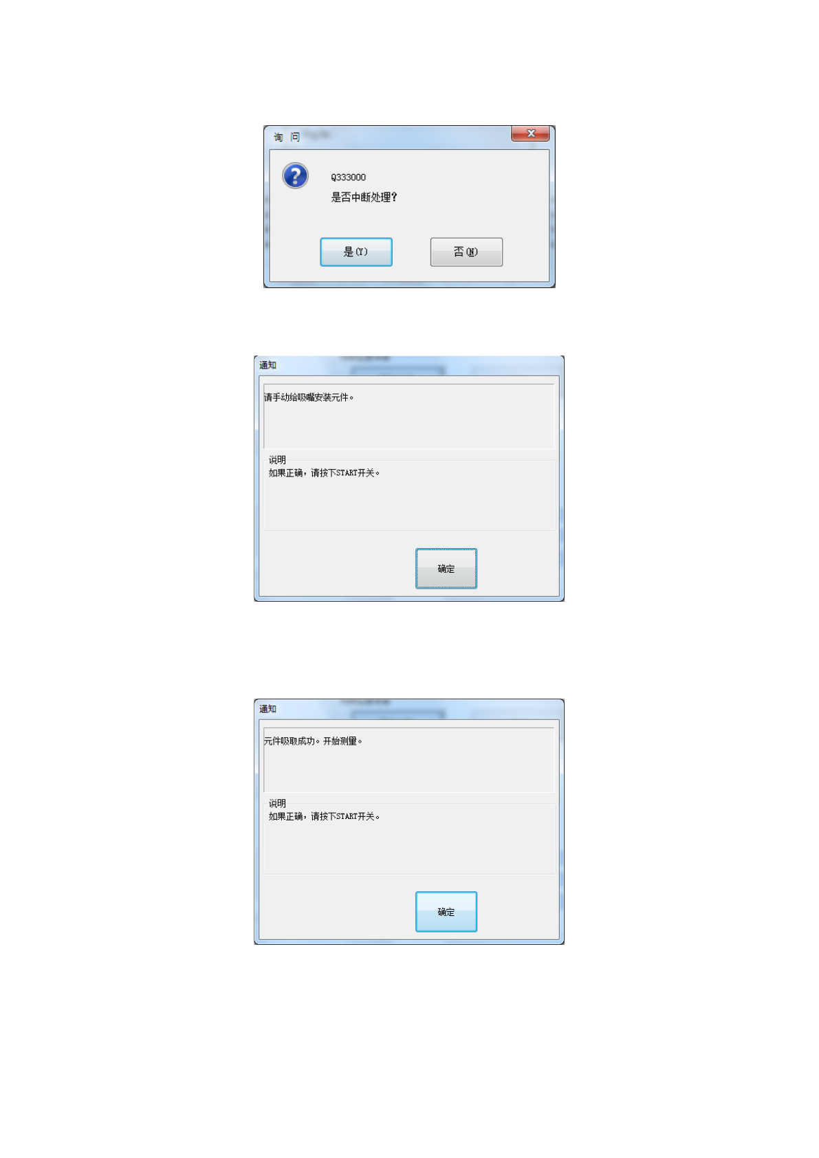 手动归还时显示以下提示信息,这时请手动从吸嘴取下元件。