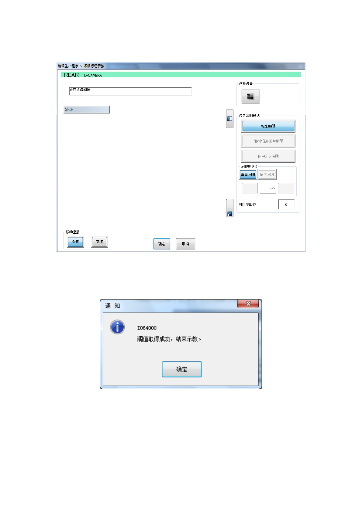 选择照明模式后,在检测框的设置中按下「确定」按钮,即显示以下对话框。