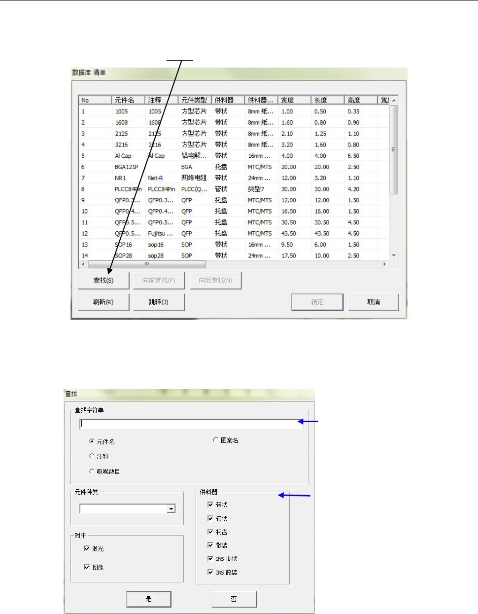 需要进一步缩小查找范围时,请指定元件种类、包装方式、对中(定心)方法。