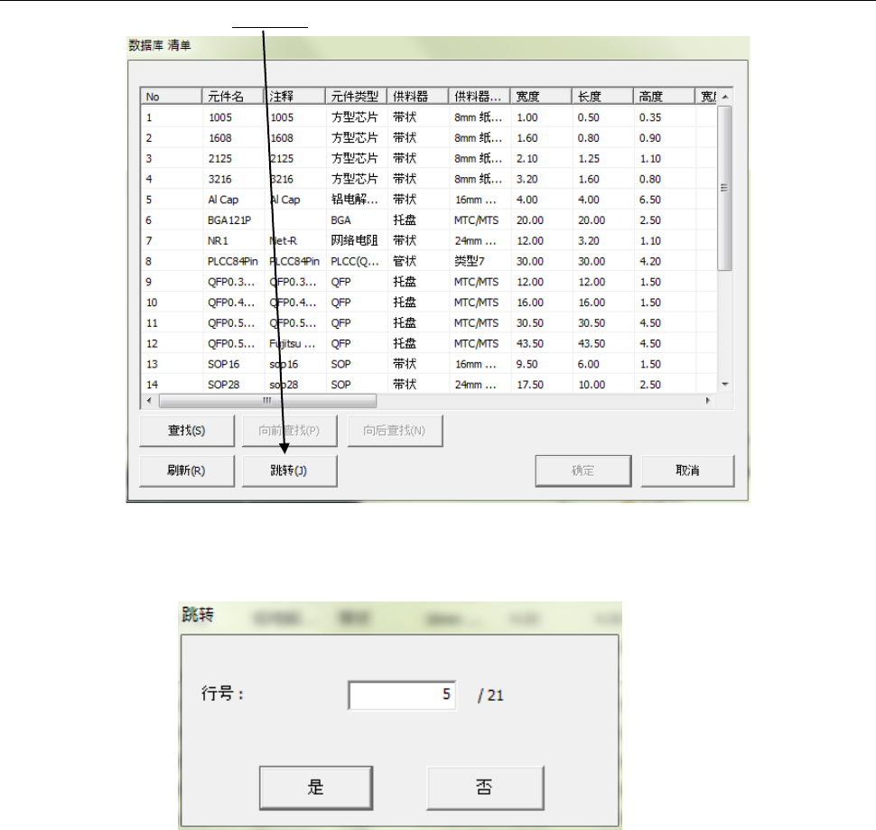 显示如下画面后,请输入跳转目标元件数据记录号码。