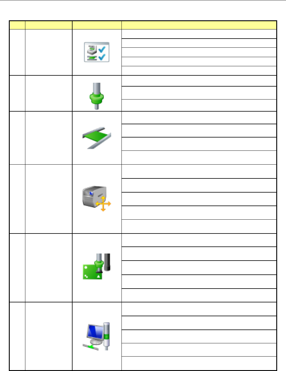 第 2 部 功能详解篇 第 8 章 机器设置 8-4 8- 3 设定项目 机器设置中的设 定 项目 分为 以下各组。 No. 操作组 显示按钮 设定 项目 ( 操作 ) 1 使用 单元 Hea d 基本 传送 MTS VCS 2 吸嘴 注册吸嘴一览 读吸嘴数据 AT C 吸嘴 分配 3 传送 基板 传送 支撑台 调整 基板停止位置 外形基准位置调 整 4 位置 设定 废弃 元件位置 IC 回收带 位置 Hea d 等待位置 MTS 装配…