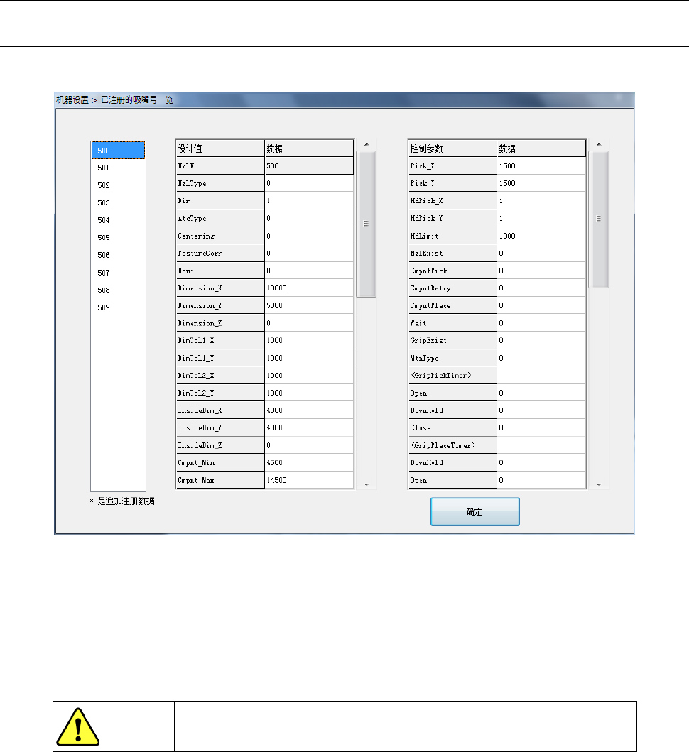 左侧的列表框显示目前已注册的吸嘴信息的吸嘴号码一览。