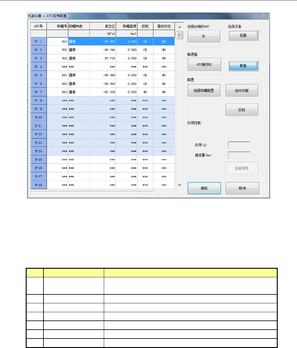 选择[ATC吸嘴分配]后,会显示如下画面。