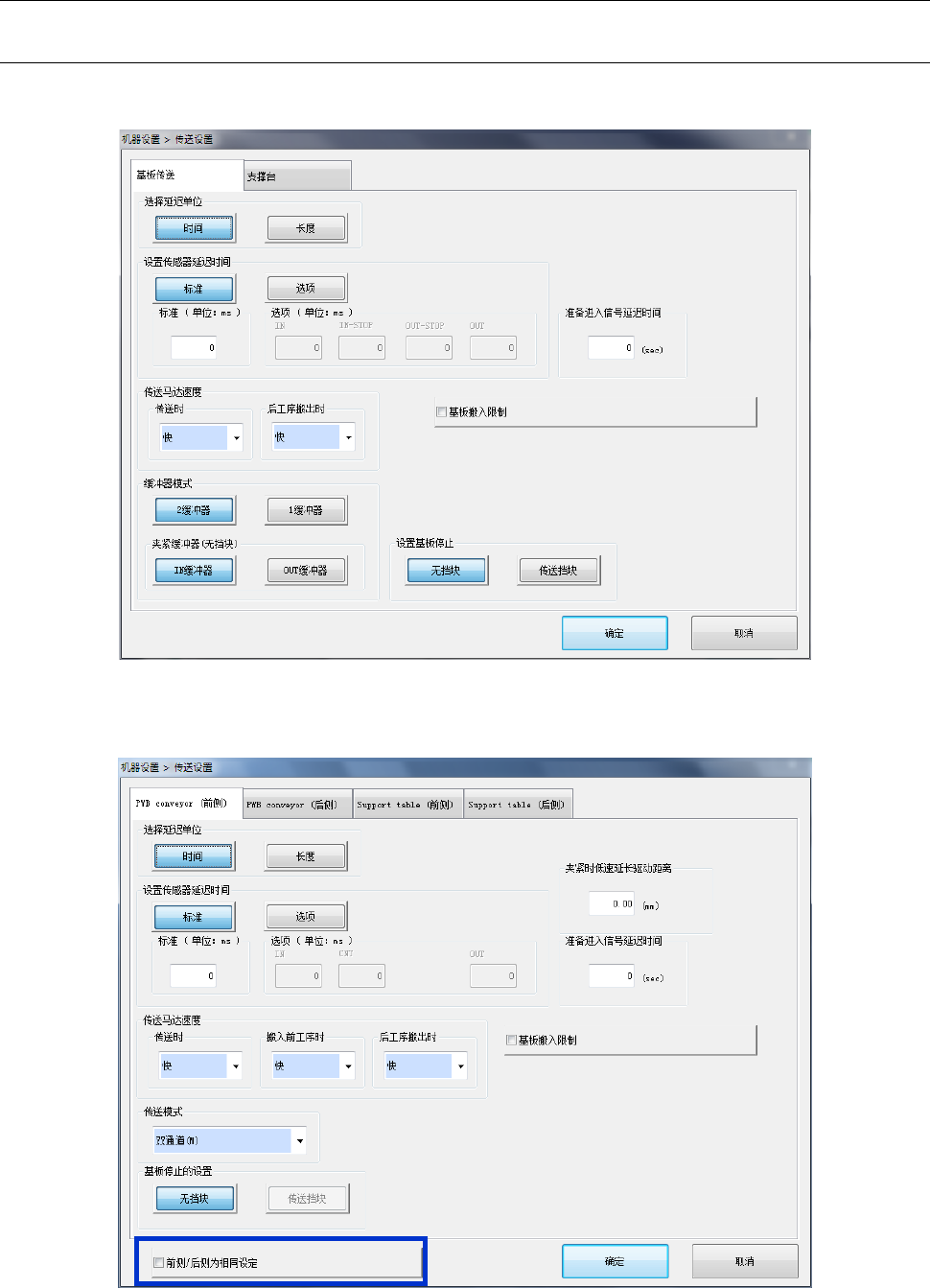 ※如果生产程序已指定了传送设定时,则适用生产程序的设定。