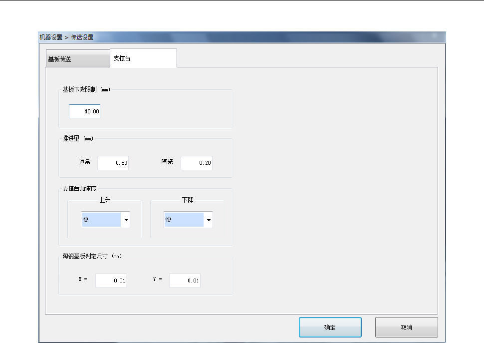 点击各选项卡,可指定[基板传送]、[支撑台]。