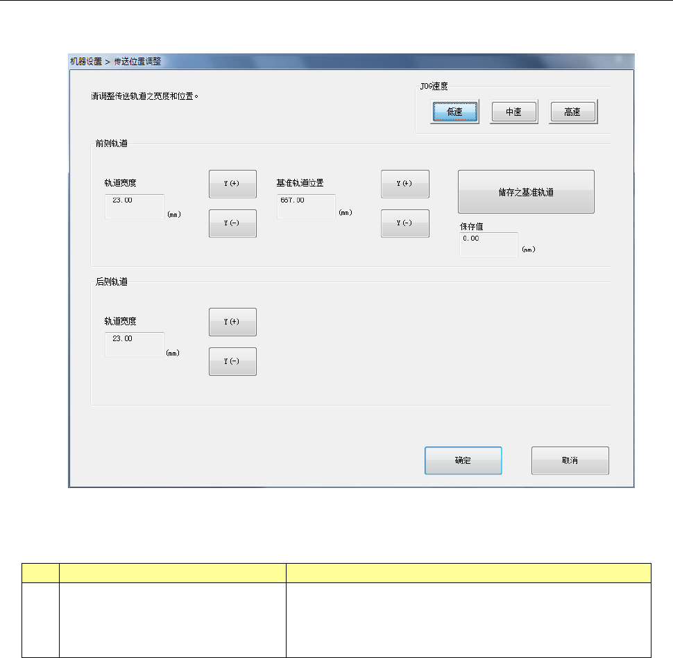 使用基准轨道的「Y(+)」, 「Y(-)」按钮使基准轨道进行 JOG 移动(微移动),选择「储存之基准轨道