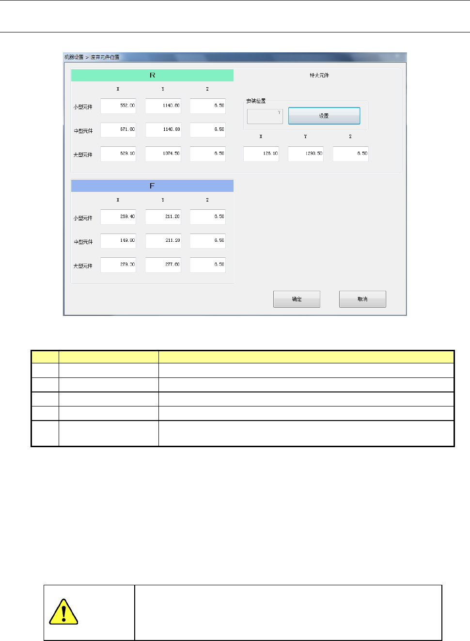 第 2 部 功能详解篇 第 8 章 机器设置 8- 37 8-3- 4 位置设定 8-3-4- 1 元件废弃位置 选择元件废弃位 置后,会显示如下元件废 弃位置设置画面。 (1) 设定 项目 No. 项目 设置内容 1 小型元件 (X 、 Y 、 Z) 小型元件 (长边小于 15mm 的元件)的 废弃位置 2 中 型元件 (X 、 Y 、 Z) 中型元件( 长边 180mm 短边 35.5m m 以下 的元件)的废弃 位置 3 大 型元…