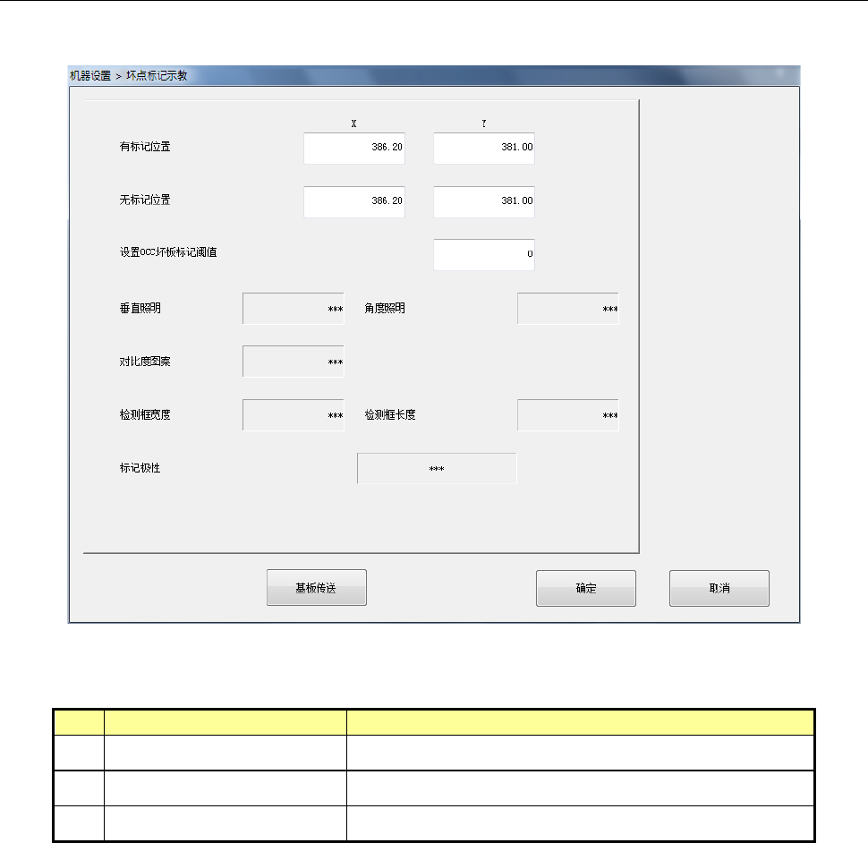 有标记位置 坏板标记中心位置的 X 坐标、Y 坐标