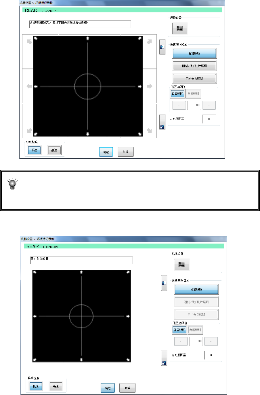 如果标记相对基板的映像较黑,请按选择设备的摄像机按钮。