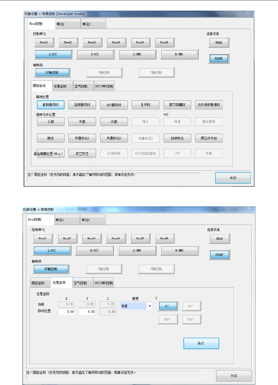 可使用[ 选择设备 ]按钮、[ 控制单元 ]按钮与 [ 轴类型 ]按钮移动指定的控制单元,进行 Head 吸嘴的