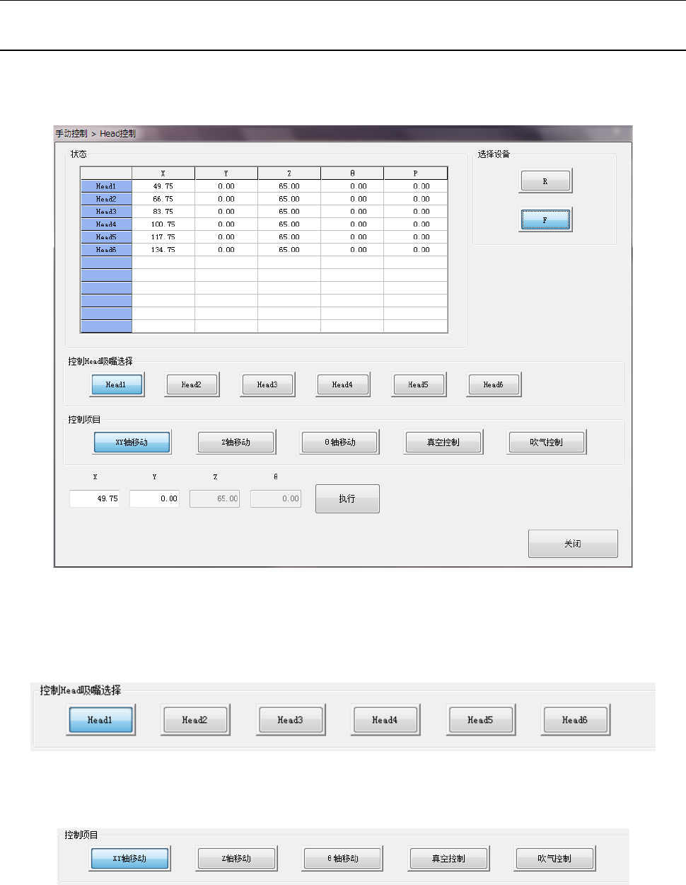 用装置选择按钮,可切换到各 Head 单元的控制。