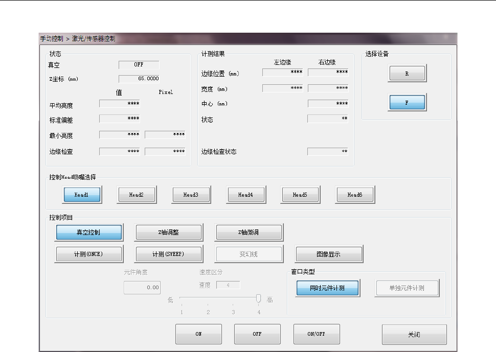 控制 Head 真空的 ON/OFF,Z 轴坐标,激光计测结果,在控制结束时显示。