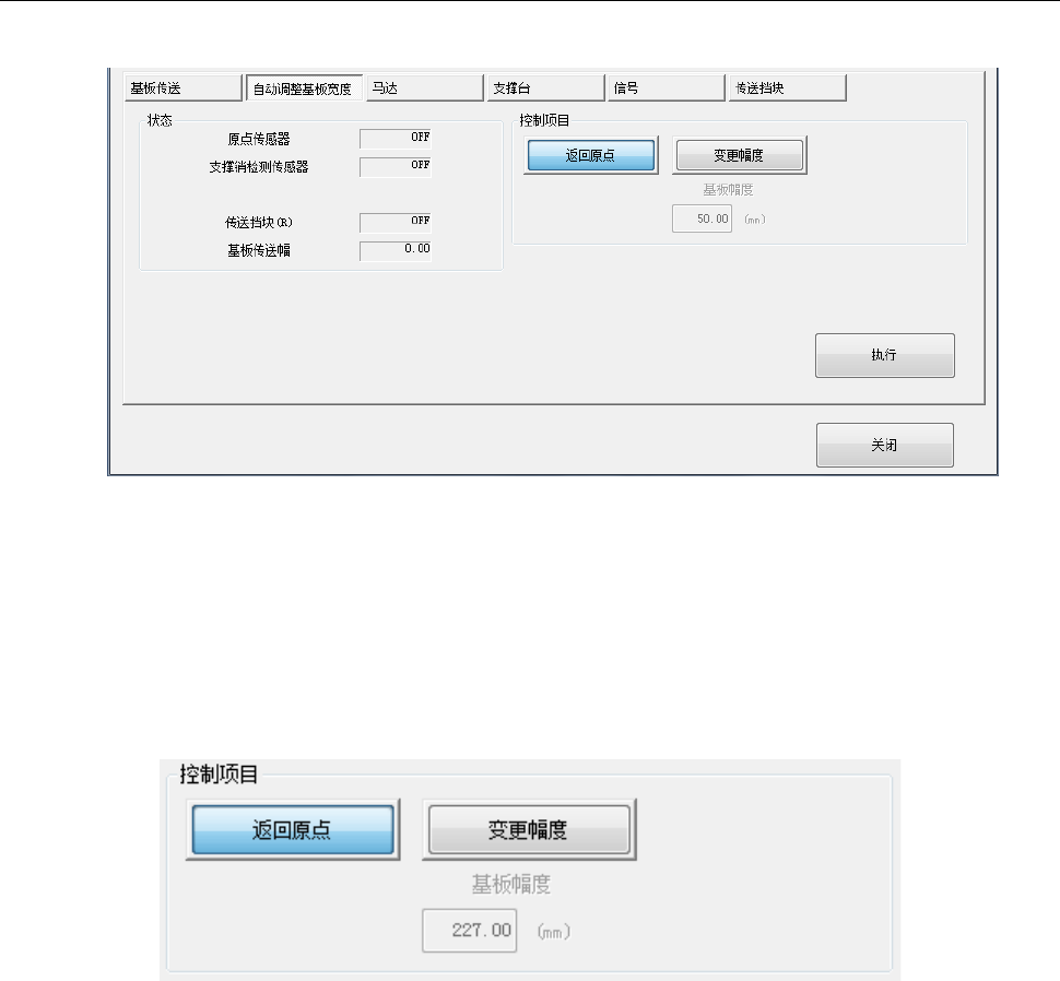 按照“基板幅度”编辑框中输入的值,变更传送的宽度(幅度)。