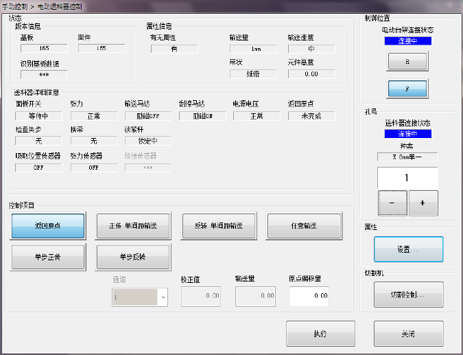 [电动台架连接状态],[送料器连接]为[未连接]时,不能进行[执行]操作。