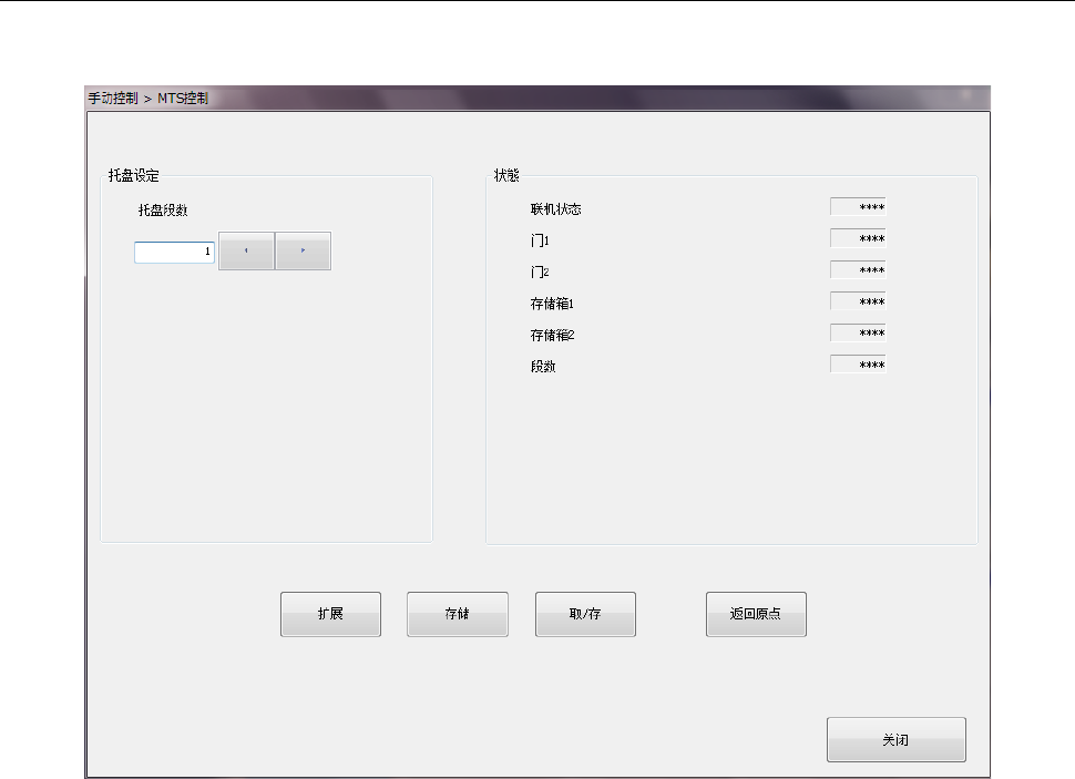设定控制对象的托盘段数。用[扩展(拉出)]按钮、[存储]按钮、[取/存]按钮、[返回原点]按钮