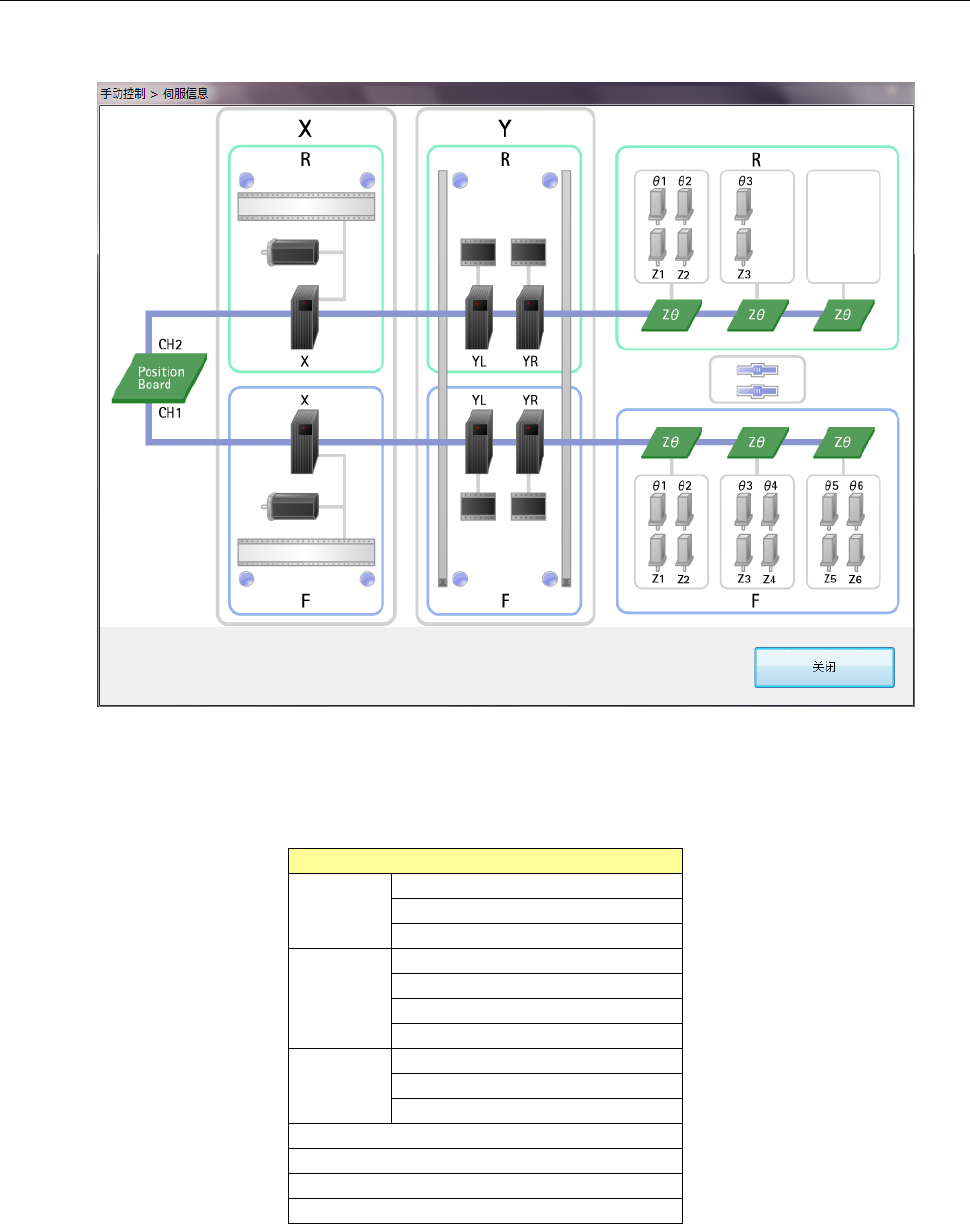 第 2 部 功能详解篇 第 9 章 手动控制 9- 43 9-6- 6 伺服状态 选择 菜单 的 [ 其他 ] - [ 伺服状态 ] , 即可显示伺服 状态对话框 。 (1 ) 伺服状态 显示伺服 当前的状态。出现 错误的单元 显示为红色。 将光标移动到单 元或各传感器的图标上, 可显示工具信息提示。 单元 Y 轴右 放大器 马达 界限传感器 正 / 负 Y 轴左 放大器 马达 界限传感器 正 / 负 马达 X 轴 放大器 马达 界限传…
