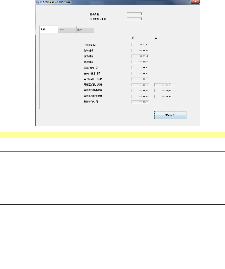 显示机器的运行时间(基板生产时间的累计等),吸嘴拆装次数等设备固有的运行信息。