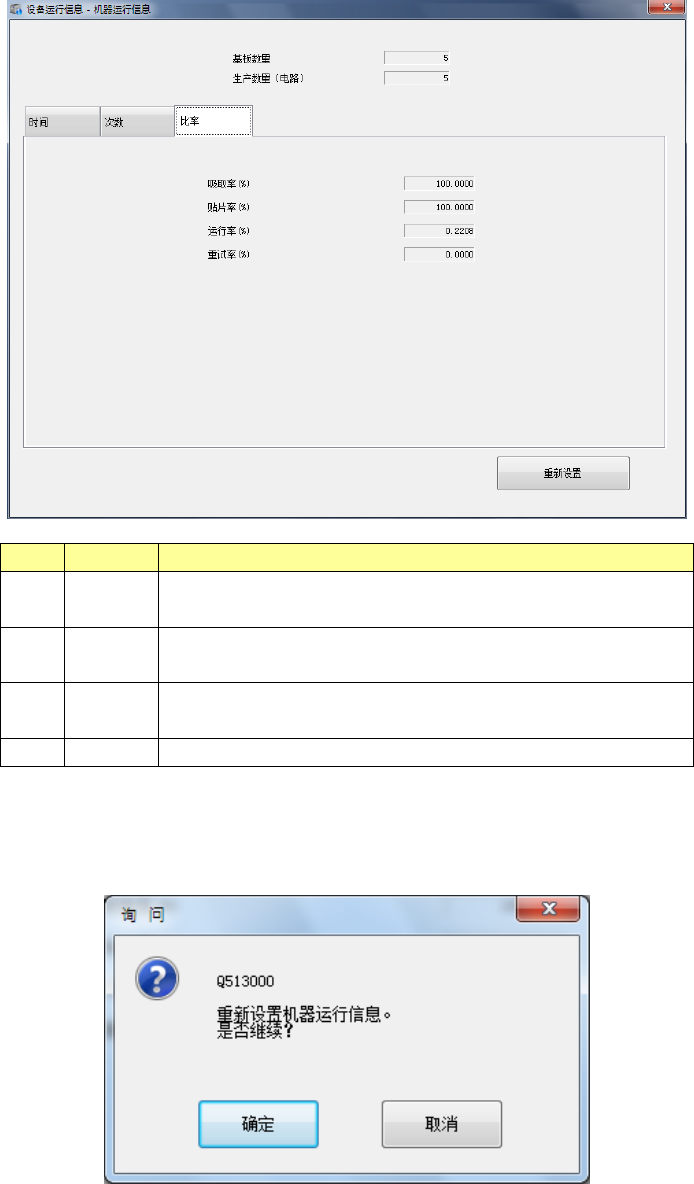 在机器运行信息画面内点击[比率]选项卡后,可显示机器运行信息(比率)画面。表内项目如下。