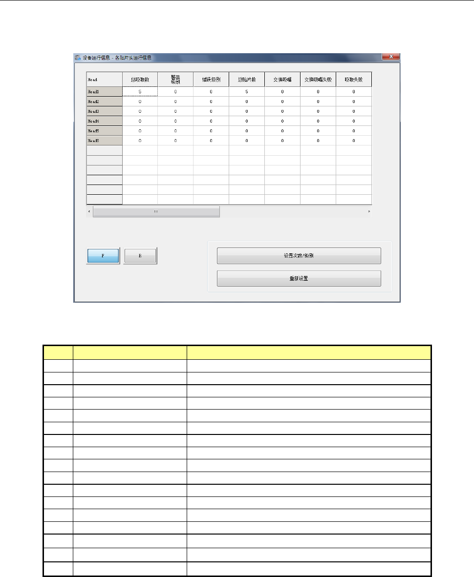 列表中显示各贴片头的运行次数及与之相关的数据。
