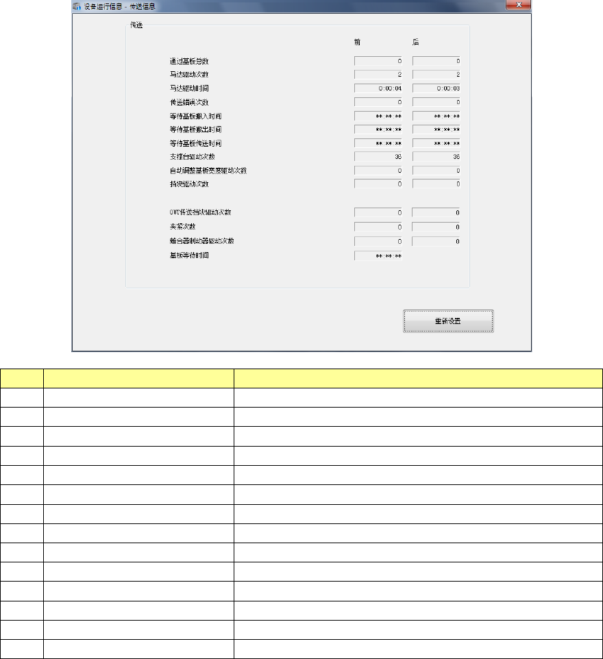 从主菜单中选择[机器]-[传送运行信息]后,可显示传送运行信息画面。