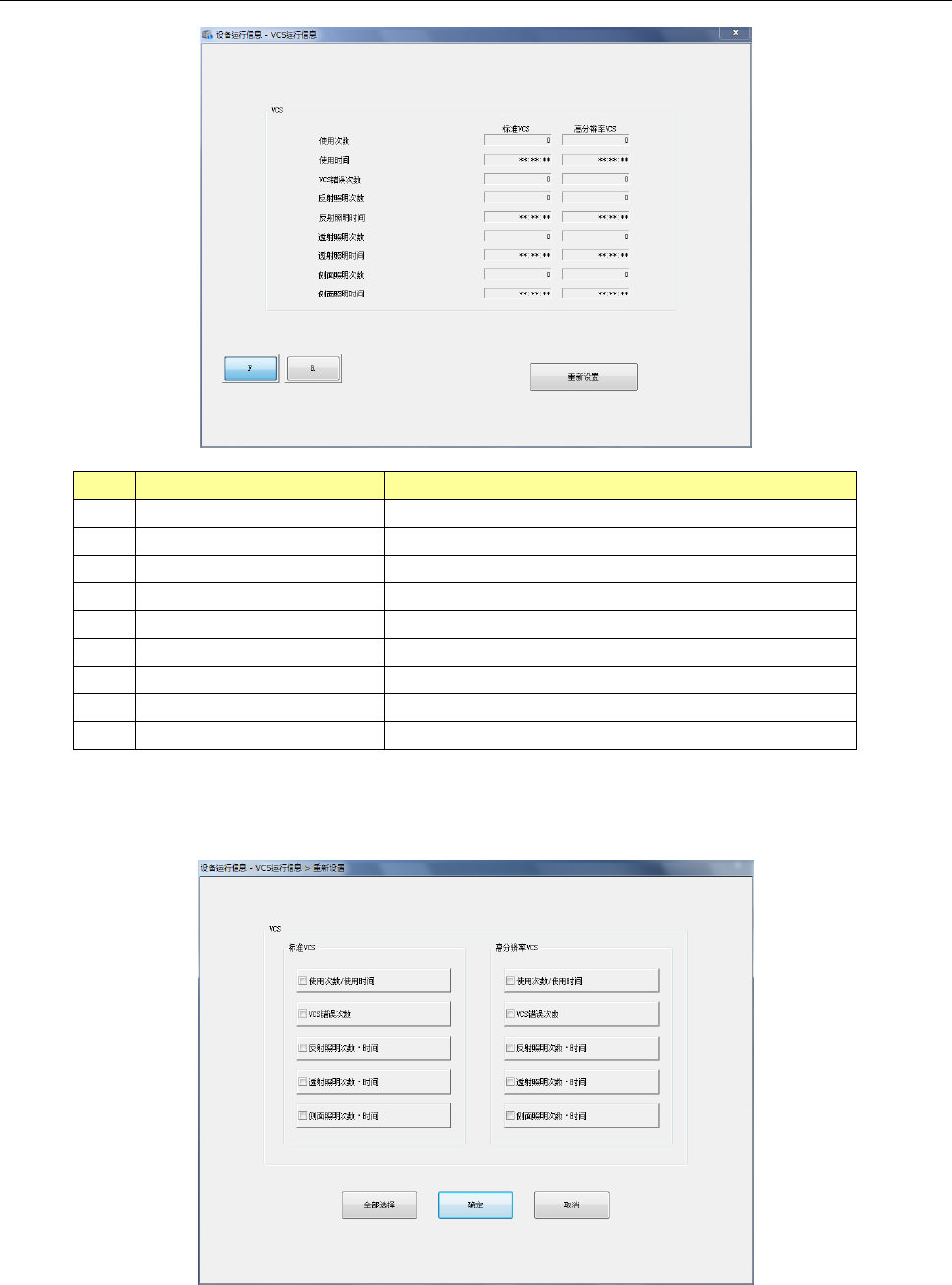 选择主菜单的[识别·检查]-[VCS 运行信息],即可显示 VCS 运行信息画面。