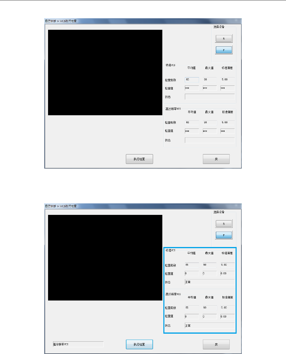 第 2 部 功能详解篇 第 11 章 自己诊断功能 11 - 10 11 -3-3- 3 VCS 脏污检查 从自己诊断菜单 选择 [V CS 沾污 ] ,即可显示 VC S 脏污检查对话框。 通过「选择设备 」选择要检查的装置,按 下 [ 执行 检查 ] 按钮,执行 VCS 脏污检查。 检查结果,在检 出级别、检出值及状态框 里显示。