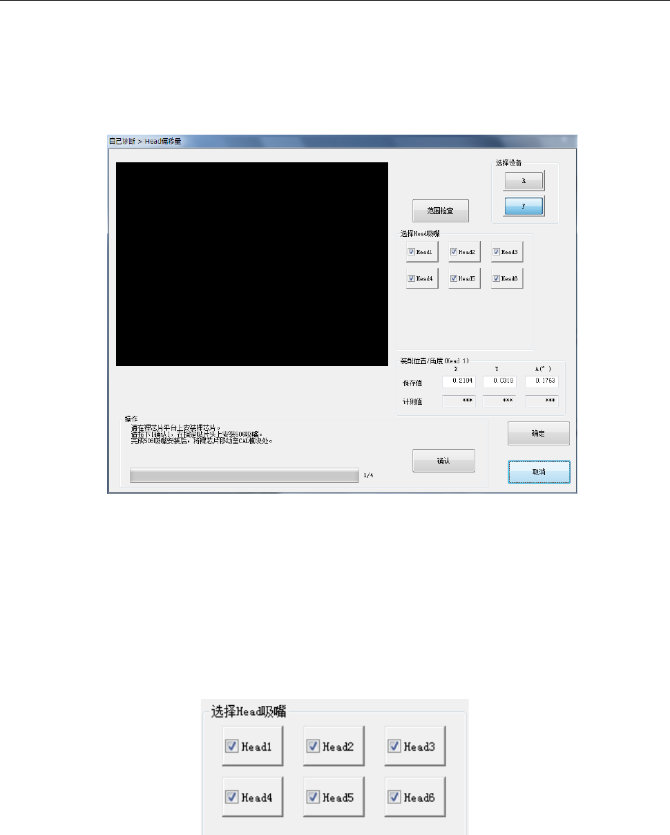 按下[范围检查]时,如果并列的 Head 偏移量值(X,Y)的最小值、最大值超过 30μ 时,会显示注