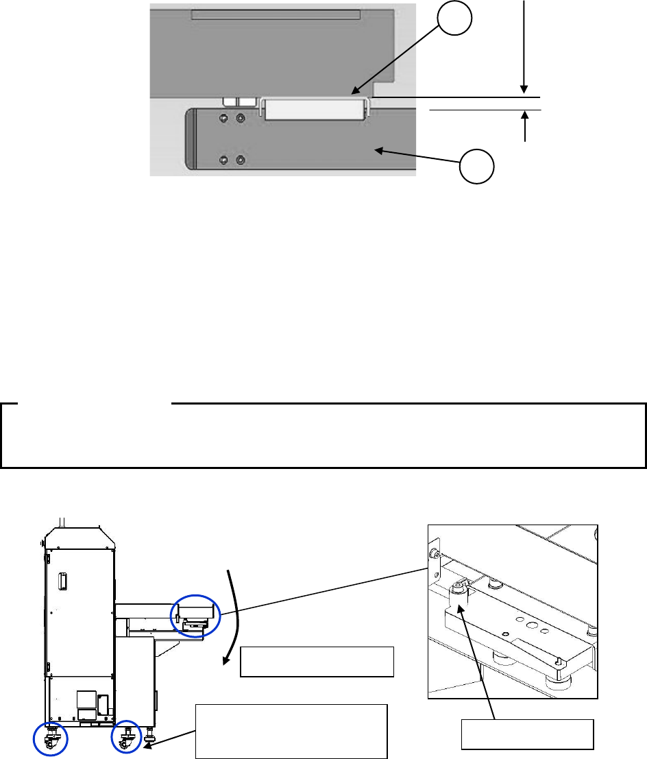 第 2 部 功能详解篇 第 12 章 选项组件 12 - 24 ・ 调整连接块的 高度 请同时进行水平 调整。 旋转 4 处脚轮调节器 ,将 ① 贴片机的 台架支撑 下面与 TR7DN 的 ② 连接块上面调 整为相同高度 。 ② 连接块上面 与 ③ 滚轮轨道 上端距离大致 为 12 mm 。 注意, 不要使 ② 连接块上面 高过 ① 台架支撑下面。 ・ 调节水平 调节水平,请与 前项连接块高度调整同时 进行。 将水平仪 放置在 Y 单元…