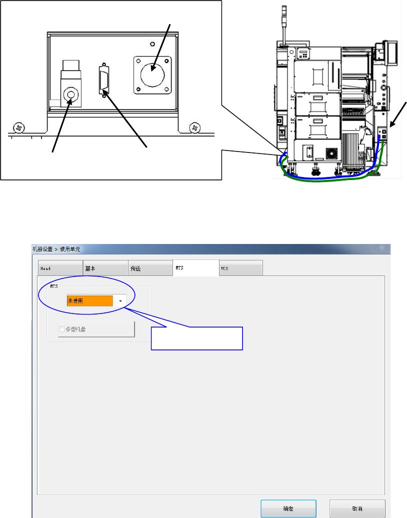 第 2 部 功能详解篇 第 12 章 选项组件 12 - 29 (1) 主 机 设置 将 电源线、通 信 线、 气管与 RX -6 连接,将 TR8S 的漏电 断路 器设置为 ON ,接通贴片机的 电源。 在此 阶段请勿将 TR 8S 插入 RX -6 主机上进行 操作 。 不要进行返回原 点, 请在管理者 以上的权 限许可的状态下 , 在机器 设置 「使用 单元」 中选择 「 TR8S 」 保存后关闭一次 电源。 缆线 气管 电源线插…