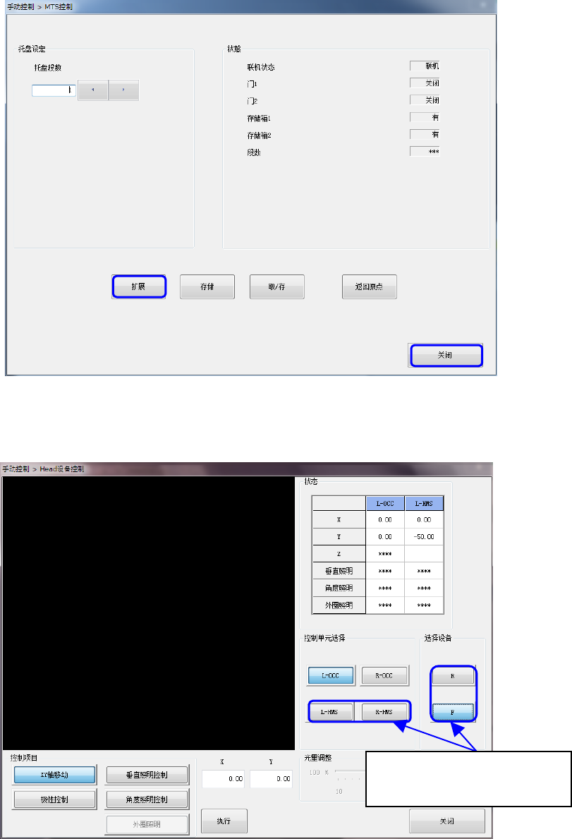 请进入手动>Head>Head 装置控制>R(后侧 Head)、 R-HMS(右侧 HMS),将 Head 移动到