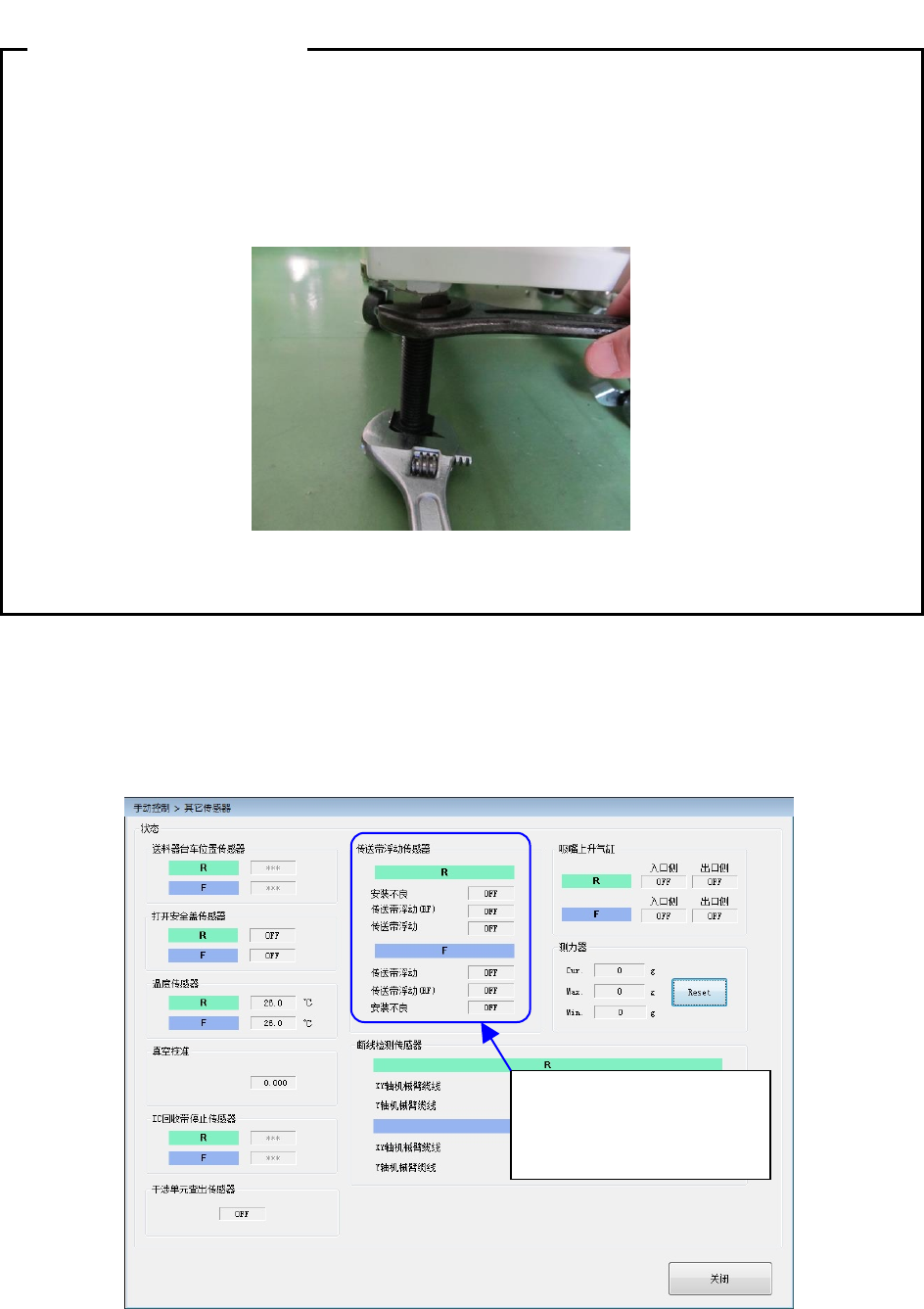 请使用 ETF8S 及 ETF8D,对后侧供料器浮动传感器的动作状况进行以下作业并进行确认。