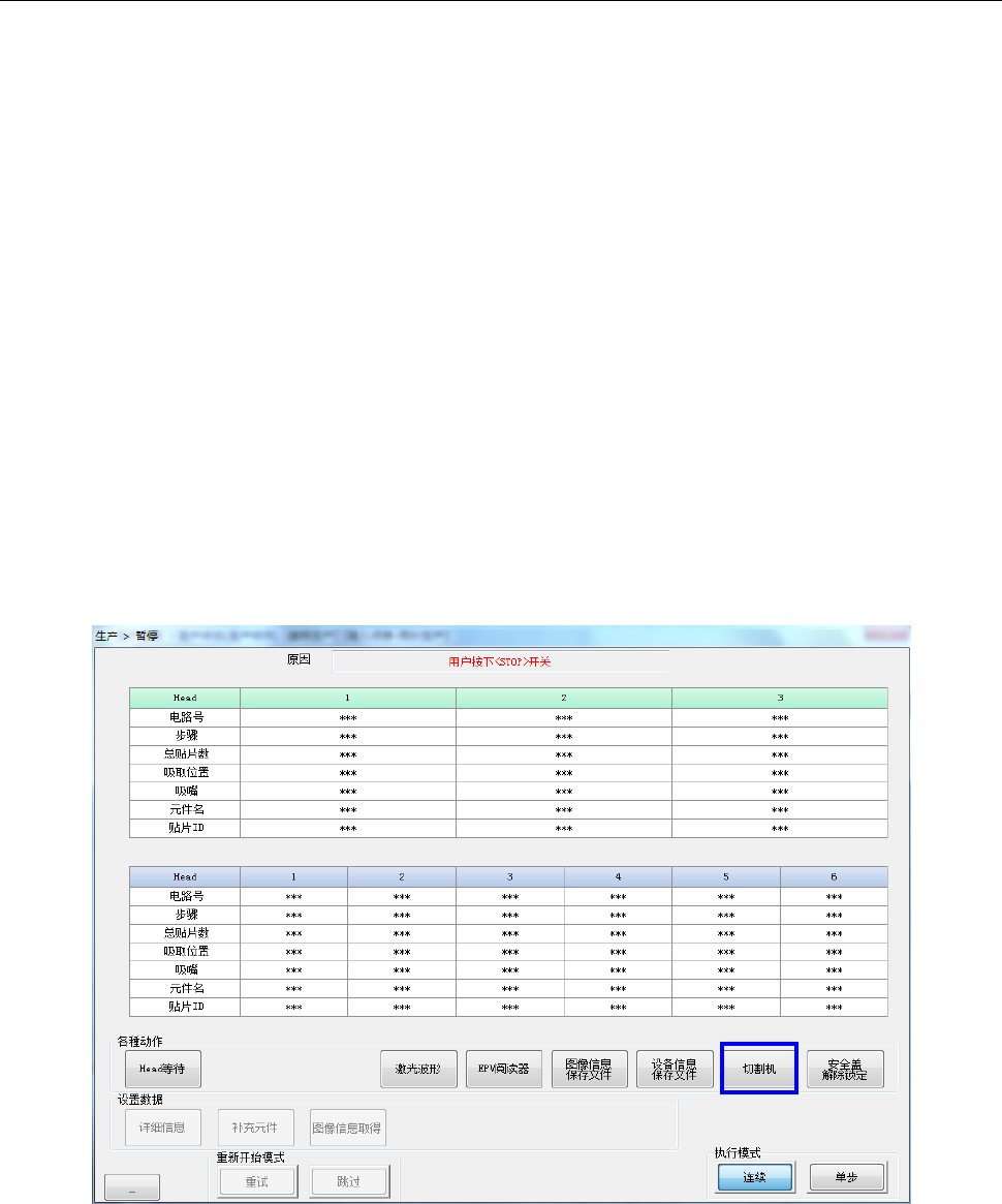 在机器设置的「选项使用单元」中“切割机”已被勾选时,在生产中,设在电动式供料器用统一更