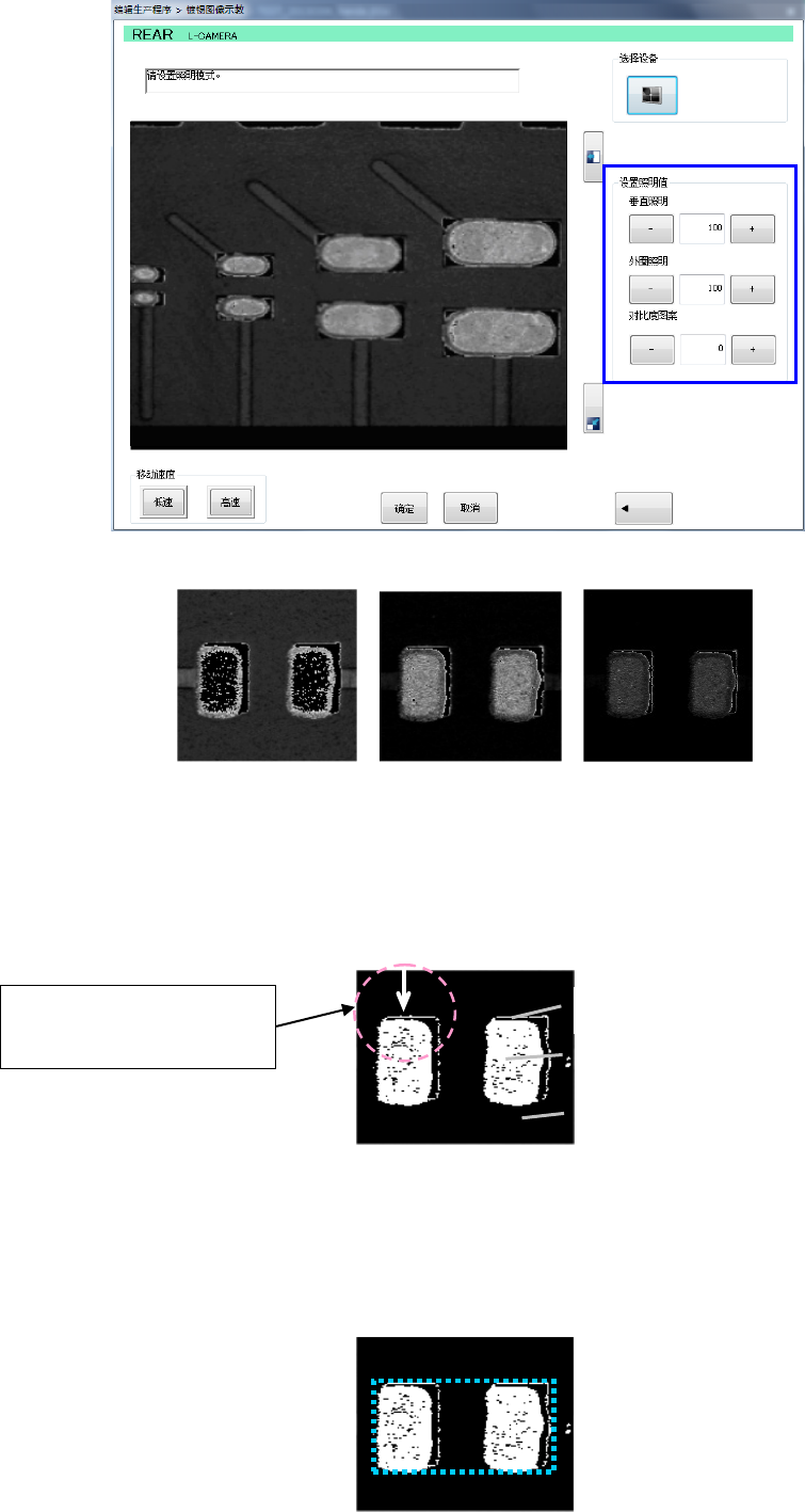 操作上下箭头键,调整 2 值化阈值,使监视器显示的焊锡单独明亮。
