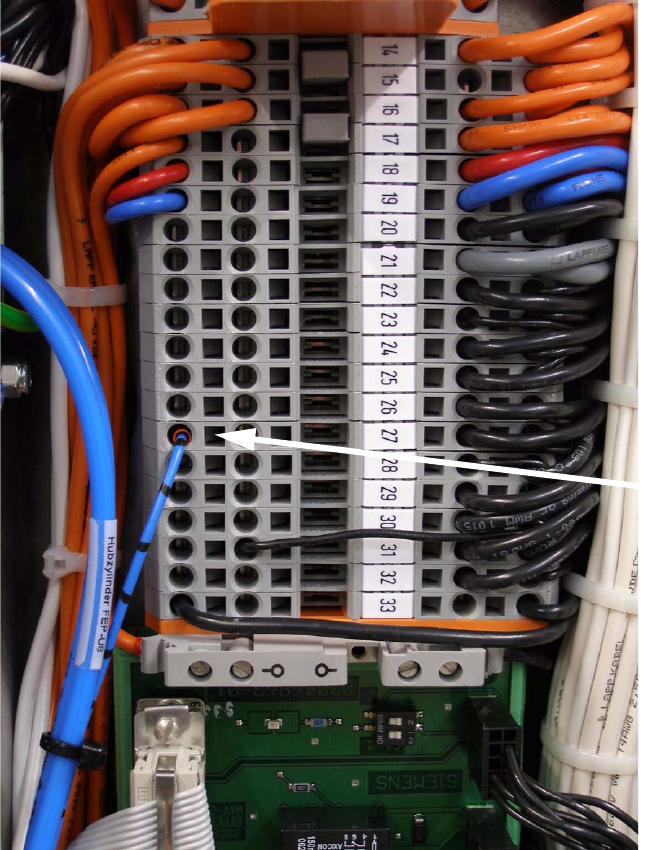 : Stecken Sie die blau/schwarze Leitung an X400:27 an.