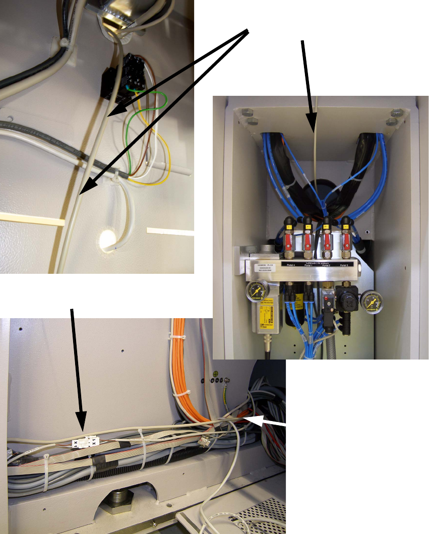 : Run the 2-wire cable, like shown on the following pictures, through the machine base to loca-